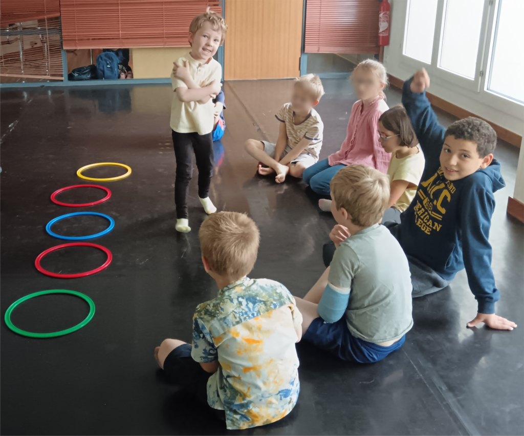 Les enfants étant toujours en train de bouger et dans le jeu, c’est par le mouvement et de façon ludique le plus souvent que je les rejoins.